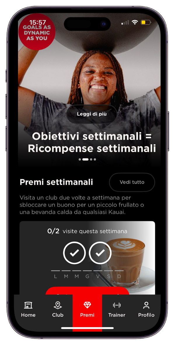 Mantenendo costante il raggiungimento dei tuoi obiettivi settimanali, raggiungi i traguardi e ottieni premi aggiuntivi: